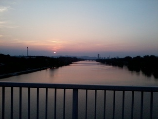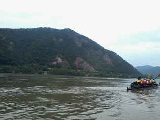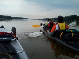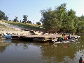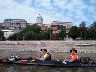 16.7. Kuudelta ylös, aamiainen kerhorakennuksella ja ja kahdeksalta vesillä, parempi luiska säästi lisäksi hermoja :-) Taivaalla ei yhtään pilveä, taitaa tulla kuuma päivä... Ruokatauolle löydettiin kovahko ranta ja syötiin puuroa vaihtelun vuoksi. Myöhemmin piti käydä puskassa ja onnistuin löytämään mutarannan johon jalat upposivat todella hyvin ja itikoitakin riitti vauhdittamaan asioita. Muuten päivän reitti oli sivuhaara jossa saimme olla rauhassa isoilta laivoilta ja vastapainoksi oli joen täydeltä nuoria kilpamelojan alkuja valmentajineen, varmaan parikymmentä mukulaa! Lopulta saavuimme Budapestiin jossa löysimme maihinnousupaikan, laiturin jossa madallus kajakista nousun helpottamiseksi. Mutta lotjamme vaativat edelleen ryhmätyöskentelyä ylös noustakseen ja Zoskaa ylös rempoessamme onnistuimme Jorman kanssa nykäisemään varpaankyntemme ympäri kumiseen pohjavahvistukseen. Kylläpä piristi!! Siihen päälle vielä parinsadan metrin kärräys ylös ja alas tulvavallia. Leirin pystyyn saatuamme paikkojen katselua ja ensiapua ja kun ei huvittanut mihinkään lähteä, mentiin teltoille ja itse otin pikku unoset, muista en tiedä. Ja seuraavaksi perus ruokailu sekavan infon kera ja sitten vaan latailemaan akkuja, täällä on pukuhuoneen seinässä kahdeksan paikan rasiat josta kyllä riittää :-) huomenna kaupunkiin tutustumista ja jos löytäisi wifi-verkon että saa nämä jutut vihdoinkin sivuille... Muutenkin on pitänyt opetella ottamaan kännykällä kuvia, koska siitä saan kuvat bluetoothilla tähän tablettiin jolla saan päivitettyä tilanteen sivuille. Mutta soneran liittymässä tuli megatavuraja yllättävän pian vastaan ja yhteydet jysähtivät sitten siihen. Pitää ottaa lisäpaketti, menköön rahaa.