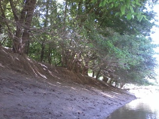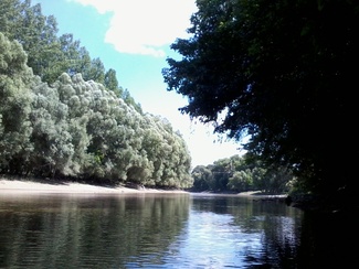 21.7. Ei pilveäkään taivaalla, 50 km taival edessä... Ja minä hullu aion tehdä ylimääräisen kympin lenkin kansallispuistoalueella. Miksei? Läpyttelyä eteenpäin, ruokatauko ennen yhtätoista ja yhden aikaan tulimme sivuhaaran kohdalle josta erkanimme. Liu'uin metsän sisään ja pysähdyin. Tämä on vanhaa Tonavaa joka on oikaistu niin että kymmenen kilsan mutka on ohitettu kahden kilsan suoralla. Vesikään ei jaksa oikein kiertoa tehdä joten eteenpäin auttavaa virtausta ei juuri ole. Kylläpä Pakkis liikkuukin hitaasti :-)