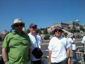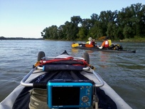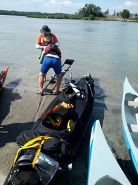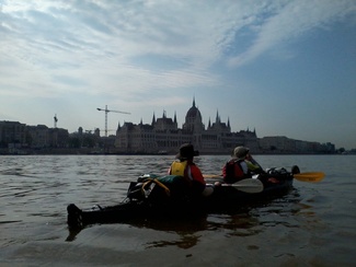16.7. Kuudelta ylös, aamiainen kerhorakennuksella ja ja kahdeksalta vesillä, parempi luiska säästi lisäksi hermoja :-) Taivaalla ei yhtään pilveä, taitaa tulla kuuma päivä... Ruokatauolle löydettiin kovahko ranta ja syötiin puuroa vaihtelun vuoksi. Myöhemmin piti käydä puskassa ja onnistuin löytämään mutarannan johon jalat upposivat todella hyvin ja itikoitakin riitti vauhdittamaan asioita. Muuten päivän reitti oli sivuhaara jossa saimme olla rauhassa isoilta laivoilta ja vastapainoksi oli joen täydeltä nuoria kilpamelojan alkuja valmentajineen, varmaan parikymmentä mukulaa! Lopulta saavuimme Budapestiin jossa löysimme maihinnousupaikan, laiturin jossa madallus kajakista nousun helpottamiseksi. Mutta lotjamme vaativat edelleen ryhmätyöskentelyä ylös noustakseen ja Zoskaa ylös rempoessamme onnistuimme Jorman kanssa nykäisemään varpaankyntemme ympäri kumiseen pohjavahvistukseen. Kylläpä piristi!! Siihen päälle vielä parinsadan metrin kärräys ylös ja alas tulvavallia. Leirin pystyyn saatuamme paikkojen katselua ja ensiapua ja kun ei huvittanut mihinkään lähteä, mentiin teltoille ja itse otin pikku unoset, muista en tiedä. Ja seuraavaksi perus ruokailu sekavan infon kera ja sitten vaan latailemaan akkuja, täällä on pukuhuoneen seinässä kahdeksan paikan rasiat josta kyllä riittää :-) huomenna kaupunkiin tutustumista ja jos löytäisi wifi-verkon että saa nämä jutut vihdoinkin sivuille... Muutenkin on pitänyt opetella ottamaan kännykällä kuvia, koska siitä saan kuvat bluetoothilla tähän tablettiin jolla saan päivitettyä tilanteen sivuille. Mutta soneran liittymässä tuli megatavuraja yllättävän pian vastaan ja yhteydet jysähtivät sitten siihen. Pitää ottaa lisäpaketti, menköön rahaa.