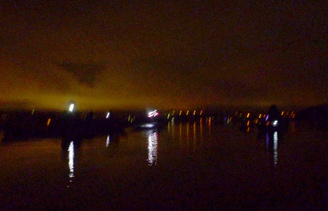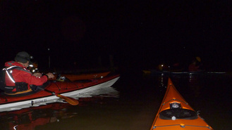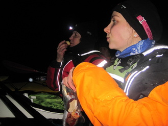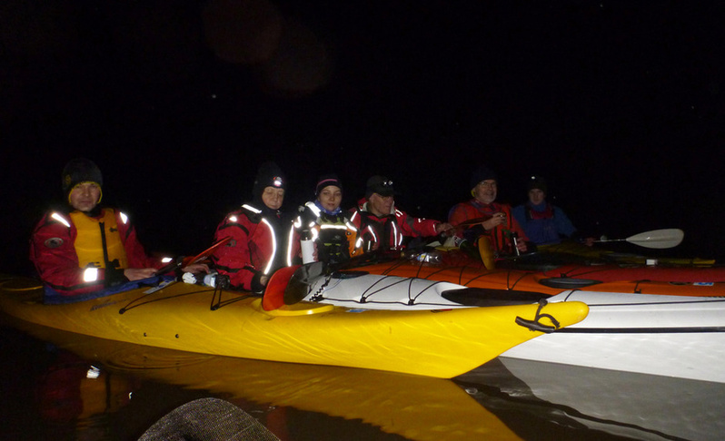 Seitsemän henkeä, reilu 11 kilometriä. Valojen vilkettä, lepakko, valokuvailua, suunnistusta, kuu!