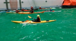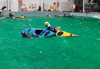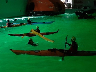 ![]() Simulaatiossa Pekka "väsähti", kokeilimme tajuttoman avustamista ja siirtoa vedessä ja kajakkiin |
