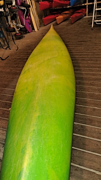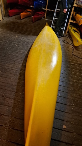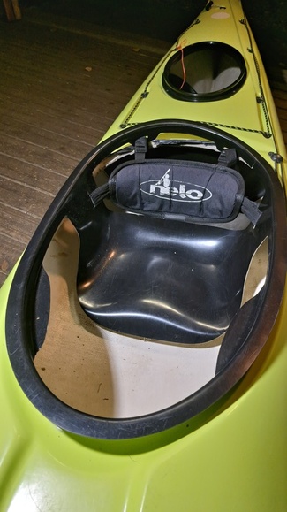 - Erittäin siistissä kunnossa ja vakaa melottava, ei juurikaan käytetty, jäänyt pyörimään ylähyllylle. Portaaton säätö jalkatuissa (eli palkit). Ei venymättömiä köysiä kannessa. Ei evää tai peräsintä.