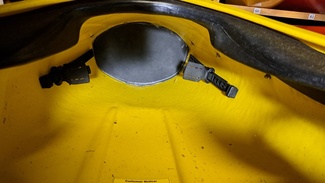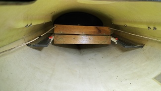 - Portaaton säätö jalkatuissa (palkit). Ei venymättömiä köysiä kannessa. Pohja, penkki ja luukut kohtuullisessa kunnossa. Takana vedetty peräsimen läpivientireiät teipillä umpeen. Ei evää tai peräsintä.