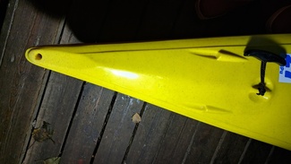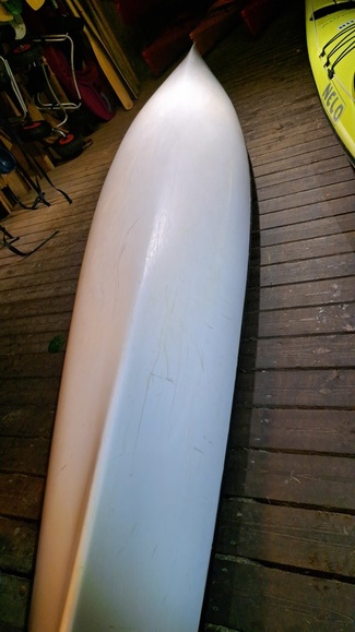 - Penkin naruissa huoltotarvetta. Muutoin ehjä ja melottavassa kunnossa. Ei evää tai peräsintä. Säädettävät jalkatuet.